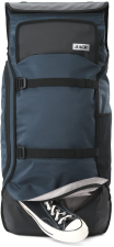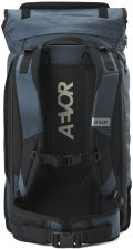 Batoh od značky AEVOR, model Travel Pack. Hlavní specialitou batohu je límec, díky kterému můžete zvětšit nebo zmenšit kapacitu batohu (od 38 do 45 litrů). Mezi hlavní prvky batohu patří voděodpudivý materiál. Batoh dále nabízí hlavní komoru se zapínáním na suchý zip - uvnitř vyztuženou přihrádku na notebook o max. rozměrech cca 39 x 27 x 3 cm (15 palců) a síťovanou kapsu na zip, vstup do batohu je možný také ze zadní strany díky dvoucestnému zipu. Na batohu dále nechybí boční kapsa na zip (uvnitř dvě síťované přihrádky), boční síťovaná přihrádka, zadní zipová kapsička, horní zipová kapsička na brýle, dva přední strepy vhodné pro upevnění skateboardu či oblečení. Samozřejmostí je potom vyztužený zádový panel, výškově nastavitelné ramenní popruhy s hrudním pásem, odepínatelný bederní pás a poutko pro lepší přenos a manipulaci. Kapacita batohu je 38 - 45 L, rozměry cca 58 x 34 x 20 cm a materiál: 50% recyklovaný polyester, 50% polyester.