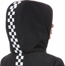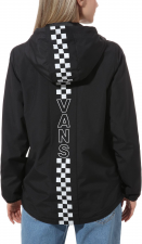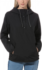 Dámska bunda od značky VANS, model ON POINT - moderný anorakový dizajn - bunda cez hlavu so zapínaním na gombíky len v polovici prednej časti. Bunda má tiež centrálne predné vrecko prístupné z oboch strán, kapucňu so sťahovacou šnúrkou, elastické manžety rukávov, elastický spodný okraj a veľkú zadnú potlač priliehajúcu ku kapucni. Materiál: 100 % polyester.
