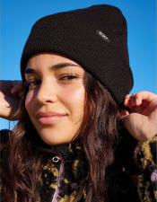 Dámský kulich od značky Roxy, z plochého žebrovaného úpletu s ohrnutým lemem na kterém se nachází kožená nášivka s logem značky. Materiál: 100% akryl.