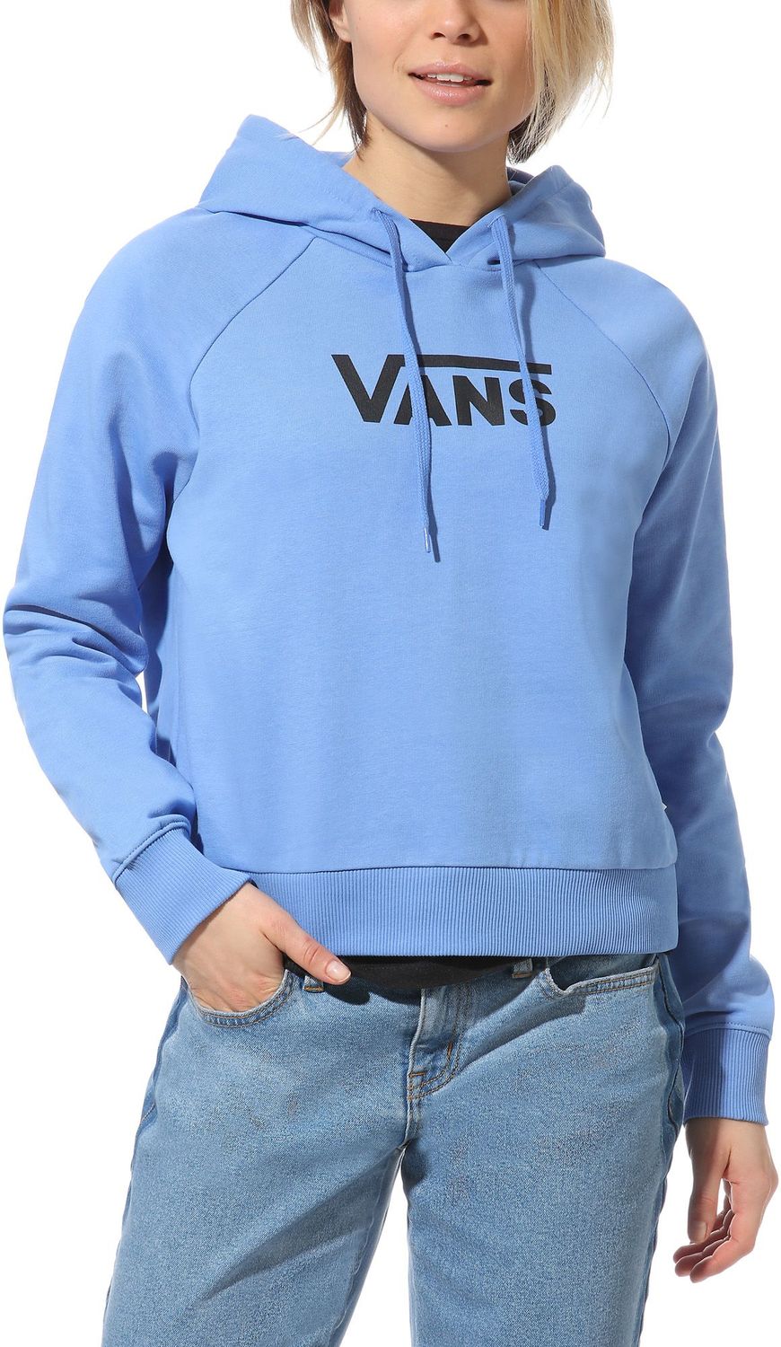 Dámská mikina od značky VANS, model FLYING V BOXY - klokan střih s kratším crop střihem, bez přední kapsy. Mikina nabízí velký design s logem značky tištěný na přední straně, stahovatelnou kapucu, lehce pružný spodní lem a lehce pružné lemy rukávů. Materiál: 100% bavlna.