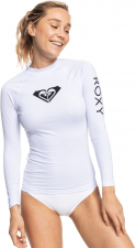 Dámské koupací/surfové tričko od značky Roxy, model Whole Hearted. Triko s dlouhým rukávem vyrobeno ze speciálního stretch polyester materiálu s plochými švy nabízí - sluneční ochranu UPF 50+, ochranu proti chlóru, vysoké vlastnosti vůči odvádění vlhkosti, zvýšený límec a velké logo značky na přední straně a na rukávu. Materiál: 86% recyklovaný polyester, 14% elastan.