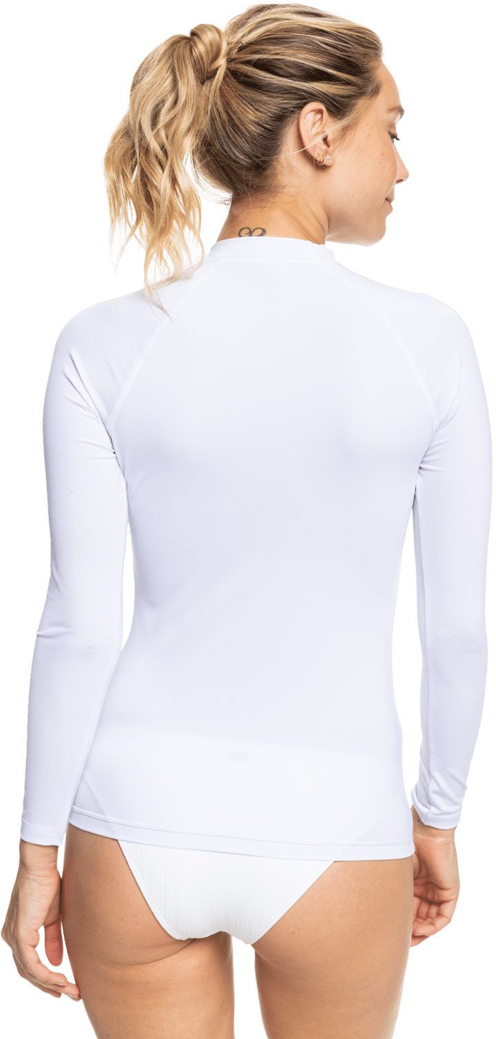 Dámské koupací/surfové tričko od značky Roxy, model Whole Hearted. Triko s dlouhým rukávem vyrobeno ze speciálního stretch polyester materiálu s plochými švy nabízí - sluneční ochranu UPF 50+, ochranu proti chlóru, vysoké vlastnosti vůči odvádění vlhkosti, zvýšený límec a velké logo značky na přední straně a na rukávu. Materiál: 86% recyklovaný polyester, 14% elastan.