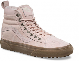 Dámske zimné topánky VANS SK8-HI 46 MTE DX majú vrchný materiál z brúsenej kože a pevnej tkaniny s technológiou 3M Scotchgard, ktorá je odolná voči vode a olejovým škvrnám, čím zabezpečuje pohodlné pranie a celkové čistenie. Topánky majú vulkanizovanú podrážku s protišmykovou úpravou a obľúbeným "vafľovým" vzorom Vans. Sú tiež vybavené mäkkou stielkou UltraCushHD, spevnenou pätou, pútkom v zadnej časti na ľahké obúvanie, kovovými krúžkami a okrúhlymi voskovanými šnúrkami.