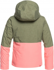 Dětská snowboardová bunda od značky Roxy, model Jetty. Bunda je vyrobena za pomoci technologie DryFlight 10K (vodní sloupec 10.000 mm, prodyšnost 5.000 g/m2/24h) a je zateplena pomocí Warmflight® X3 technologie (tepelná izolace, vysoká prodyšnost a lehkost - poměr zateplení 200g tělo, 140g rukávy a 60g kapuca). Bunda nabízí podlepené kritické švy, kapucu, zvýšený límec s příjemnou fleece podšívkou, celopropínací zip krytý légou na suchý zip a dva druky, dvě přední kapsy s fleece podšívkou, zipovou kapsu na rukávu (vhodnou na skipas), vnitřní síťovanou volně přístupnou kapsu na brýle, neodnímatelný sněžný pás, manžety na suchý zip a spodní lem na dvoubodové stahování. Svrchní materiál: 100% polyester twill, výplň/zateplení: 100% polyester, podšívka: 100% polyester.