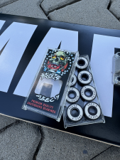 Skateboardová ložiska se standartním rozměrem (všechny typy koleček) ve stylové černo-bílé barvě. Parametr ABEC 9. Zapouzdřené premium ložiska s ochrannou nylonovou vložkou za účelem snížení hmotnosti a s funkcí ochrany proti prachu. Ložiska jsou od výroby lubrikovaná speciálním olejem. Cena uvedena u produktu je cena za celé balení - tedy 8 kusů ložisek.
