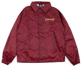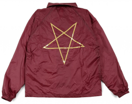 Pánská bunda od kultovního Thrasher Magazinu. Model bundy s názvem PENTAGRAM - moderní coach jacket provedení (bunda na knoflíky s límečkem) - příjemný tenký materiál (nylon, polyester), v přední části dvě kapsy, tenká podšívka, zlatý potisk na prsou a velký pentagram tištěný na zádech.