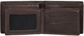 Kvalitní pánská kožená peněženka od značky Quiksilver, model New Miss Dollar II - peněženka na volné otevírání nabízí speciální blokovací materiál RFID, který zabraňuje načítání signálu bezdotykových platebních karet (ochrana proti okradení) - vnitřní přihrádky na kreditní karty, bankovky, doklady a zipová kapsa na mince. Součástí peněženky je menší vyjímatelná peněženka pouze na bankovky a kreditní karty se síťovanou kapsou. Materiál: 100% telecí kůže, rozměry pro velikost M jsou cca 12 x 9 cm.
