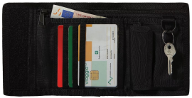 DWR – vodoodpudivé: odolná vodoodpudivá úprava chrání před lehkou vlhkostí a nasáknutím látky. Recyklovaný materiál: vyrobeno z recyklovaných materiálů, čímž se snižuje odpad na skládkách a dopad na přírodu. Zapínání na suchý zip. Uvnitř přihrádky na bankovky, karty a malá kapsa na suchý zip na mince.