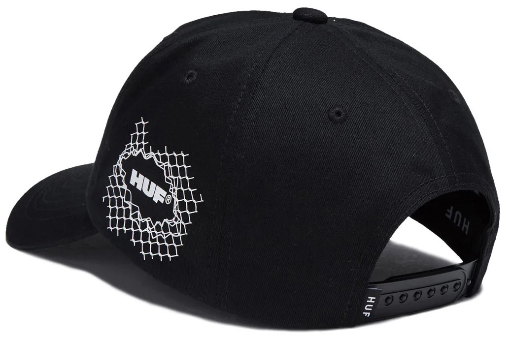 Pánská kšiltovka HUF - keprová 5-panel kšiltovka s oblým kšiltem, s potiskem na předním panelu a levém panelu. V zadní části čepice plastové nastavování díky kterému je čepice univerzální velikosti. Materiál: 100% bavlna.