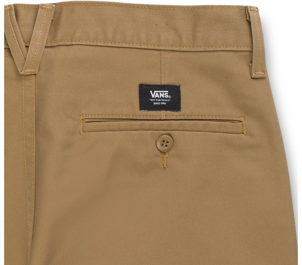 Pánské kalhoty od značky VANS, model AUTHENTIC CHINO SLIM. Oblíbené kalhoty původně robustního chino střihu s nadčasovou kombinací klasického stylingu a funkčnosti na skateboardu, v upnutější Slim Fit verzi. Kalhoty jsou ošetřené antimikrobiální úpravou SILVADUR™, která chrání látku před bakteriemi a minimalizuje zápach. Dále kalhoty nabízejí dvě otevřené přední kapsy, dvě zadní kapsy na knoflík, zapínání na knoflík se zipem a poutka na pásek. Střih: Slim Fit. Materiál: 64% bavlna, 34% polyester, 2% lycra.