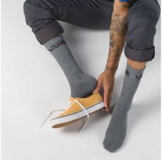 Oblíbené pánské ponožky VANS, model Classic ve střihu crew = vyšší nad kotníky. Ponožky nabízejí logo značky v jacquard provedení, mírnou podporu paty, mírnou podporu špičky a žebrované provedení v oblasti kotníku.