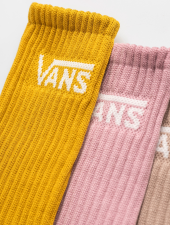 Oblíbené pánské ponožky VANS, model Classic ve střihu crew = vyšší nad kotníky. Ponožky nabízejí logo značky v jacquard provedení, mírnou podporu paty, mírnou podporu špičky a žebrované provedení v oblasti kotníku.