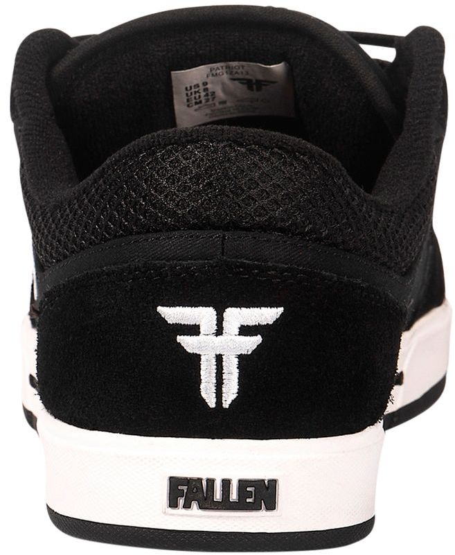 Boty Fallen Patriot skvěle doplňují designové dědictví klasického vzhledu značky Fallen. Pohodlná cupsole navržená tak, aby měla větší ochranu pro skateboarding. Podrážka velmi odolná proti oděru, technologie FLX využívá odlehčenou zúženou mezipodešev Eva Midsole pro lepší pocit z prkna a pohodlí, vnitřní stélka z nárazové pěny pro dlouhotrvající tlumení nárazů, která zároveň pomáhá předcházet otlakům na patě, True Fit podpora dodává pohodlí a oporu kolem nártní klenby chodidla.