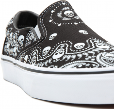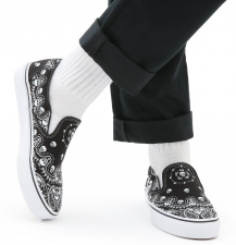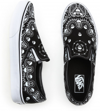 Oblíbený model bot od značky VANS, model SLIP-ON. Stylové nazouváky s povrchem z pevné textilie s bílým prošitím vyladěné pomocí celoplošného bandana designu. Boty mají mírně vyztuženou oblast kolem kotníků pro lepší stabilitu nohy, měkkou stélku, která zajistí pohodlný dopad a pevnou vulkanizovanou podrážku s oblíbeným Vans wafle vzorkem.