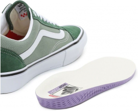 Legendární model bot od značky VANS potuněný do čistě skejtové DNA pod označením SKATE. Boty nabízejí anatomicky tvarovanou vyjímatelnou vnitřní stélku PopCush™ a pevnost celé konstrukce boty jistí technologie DURACAP™. Boty dále nabízejí pevnou vulkanizovanou podrážku s oblíbeným waffle vzorem, obrandovanou zpevněnou patu s logem skate ryby a nápisem SKATEBOARDING, vyztuženou oblast kolem kotníku a lehce vyztužený jazyk. Zajímavostí je nově postranní nášivka se šachovnicí, která nahradila samotné logo značky. Svrchní materiál: kombinace broušené kůže a textilie. Součástí balení jsou navíc náhradní tkaničky.