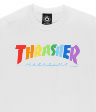 Nejprodávanější a dnes již nejikoničtější produkt v podání kultovního Thrasher Magazinu. Oblíbený design SKATE MAG známý z nadpisu časopisu, přepracovaný do barevné verze pod název RAINBOW MAG. Tričko má krátký rukáv, velký potisk na hrudníku a příjemný regular střih. Materiál: 100% bavlna.