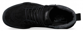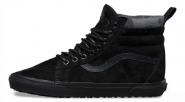 Pánské kotníkové boty značky Vans model SK8-HI MTE, inspirované old school módou, povrch boty je z černé jemné broušené kůže s textilními detaily, kulaté tkaničky, kovové kroužky pro snadné šněrování, poutka na patě, logo Vans na jazyku, Vans kožený pruh na boku, zpevněná pata a špička, podšívka je zateplená od kotníků k patě, kvalitní izolace, protiskluzová a pevná podrážka se vzorem ,,waffle,,.