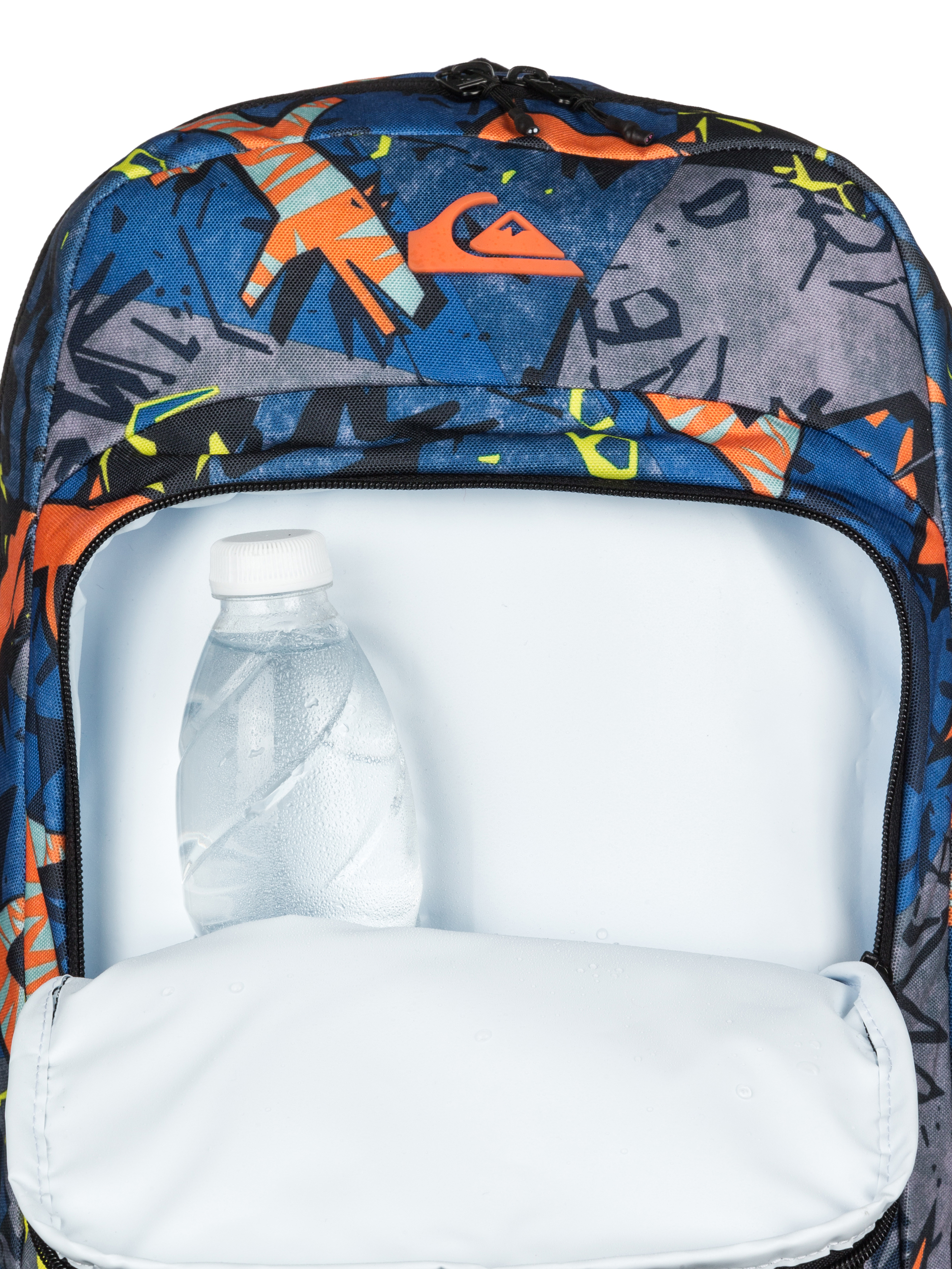 Pánský batoh Quiksilver Schoolie má hlavní kapsu se zapínáním na dvoucestný zip, uvnitř je organizér a polstrovaná kapsa na mobil. Vpředu je menší kapsa na zip vhodná na drobnosti a chladící kapsa na zip vhodná na potraviny nebo nápoje. Na boku je volně přístupná přihrádka a na druhé straně je kapsa na zip s fleece podšívkou pro uložení například láhve na pití. Dále má tento školní batoh vyztužená záda i ramenní popruhy pro větší pohodlí, lehce vyztužené dno a poutko pro zavěšení. Rozměry jsou cca 43 x 31 x 22 cm, objem cca 30 L.