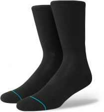 Stylové ponožky od oblíbené značky Stance, model FASHION ICON - kvalitní provedení s jednoduchým ikonickým designem v černém provedení. Ponožky vyššího střihu označovaný jako classic crew nabízejí: zesílenou patu, zesílenou špičku, elastickou podporu klenby, přizpůsobivý lem a kvalitní, vysoce příjemný materiál. Logo značky je vyšité na obou ponožkách. Materiál: 61% česaná bavlna, 18% polyester, 16% nylon, 5% elastan.