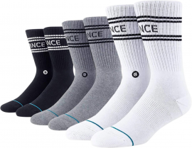 Ponožky od oblíbené značky Stance, model Basic v provedení 3 Pack - kvalitní provedení stylových ponožek s jednoduchým ikonickým designem značky Stance. Ponožky vyššího střihu označovaný jako Crew Socks nabízejí: zesílenou patu, zesílenou špičku, elastickou podporu klenby, přizpůsobivý lem a kvalitní, vysoce příjemný materiál. Logo značky je vyšité na obou ponožkách.