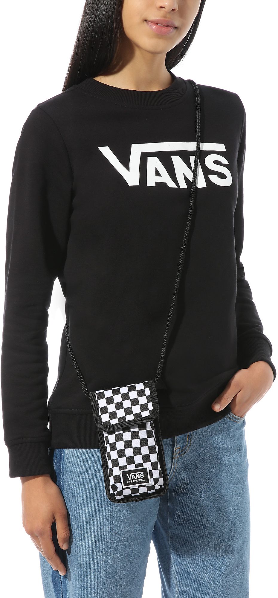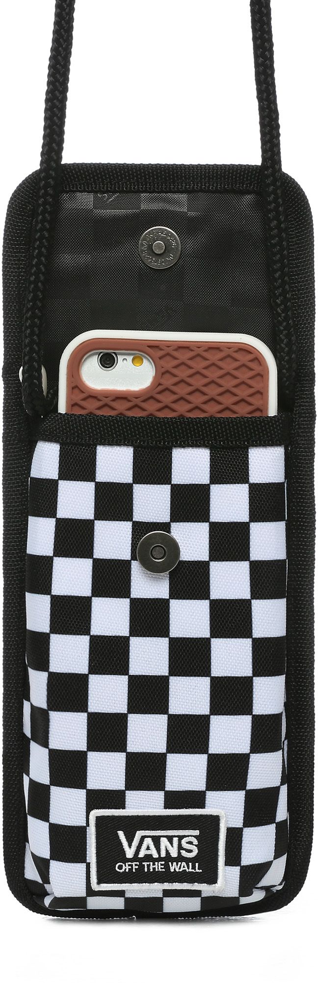 Pouzdro na telefon od značky VANS, model HOLD THA PHONE - obal nabízí hlavní kapsu na druk, menší přední průhlednou ID kapsu a dlouhou tkaničku s možností nosit přes rameno. Rozměr obalu je cca 18 x 10.5 cm.