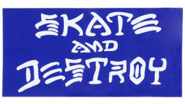 Samolepka ikonického SKATE AND DESTROY designu od kultovního Thrasher Magazinu. Samolepka z kvalitního materiálu, který je laminovaný a díky tomu vysoce odolný.