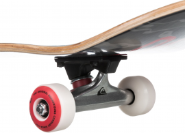 Skateboard komplet od značky Quiksilver, model Flaming - kvalitní deska lepená ze 7-mi vrstvého javoru, komplet určen na street ježdění. Skateboard je osazen na polyuretanových kolečkách od značky Quiksilver o velikosti 53 mm a tvrdosti 99A. Ložiska jsou ABEC 9 (608 2RS). Podvozky (trucky) jsou od značky Quiksilver o rozměru 5.25 palců. Samozřejmostí je předem nalepen grip na vrchní straně skateboardu.