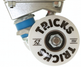 Skateboard komplet od značky TRICKS, model SKELETON je určen pro jakýkoliv styl skateboardingu. Celý komplet je postaven na desce ze 7-vrstvého javoru, osazen je trucky o šířce 5.0 LOW na polyuretanových kolečkách od značky TRICKS o velikosti 52 mm, tvrdosti 101A s ložisky ABEC 7, součástí kompletu je samozřejmě předem nalepený grip. Celkový rozměr kompletu je 7.87 x 31.60 palců.